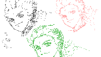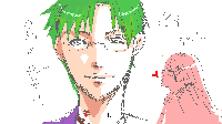 左の絵は、私がフリーズ退席して帰ってくる前の絵。右の絵は、私が帰ってきてから何も見えない状態でらくがきしてやった絵。